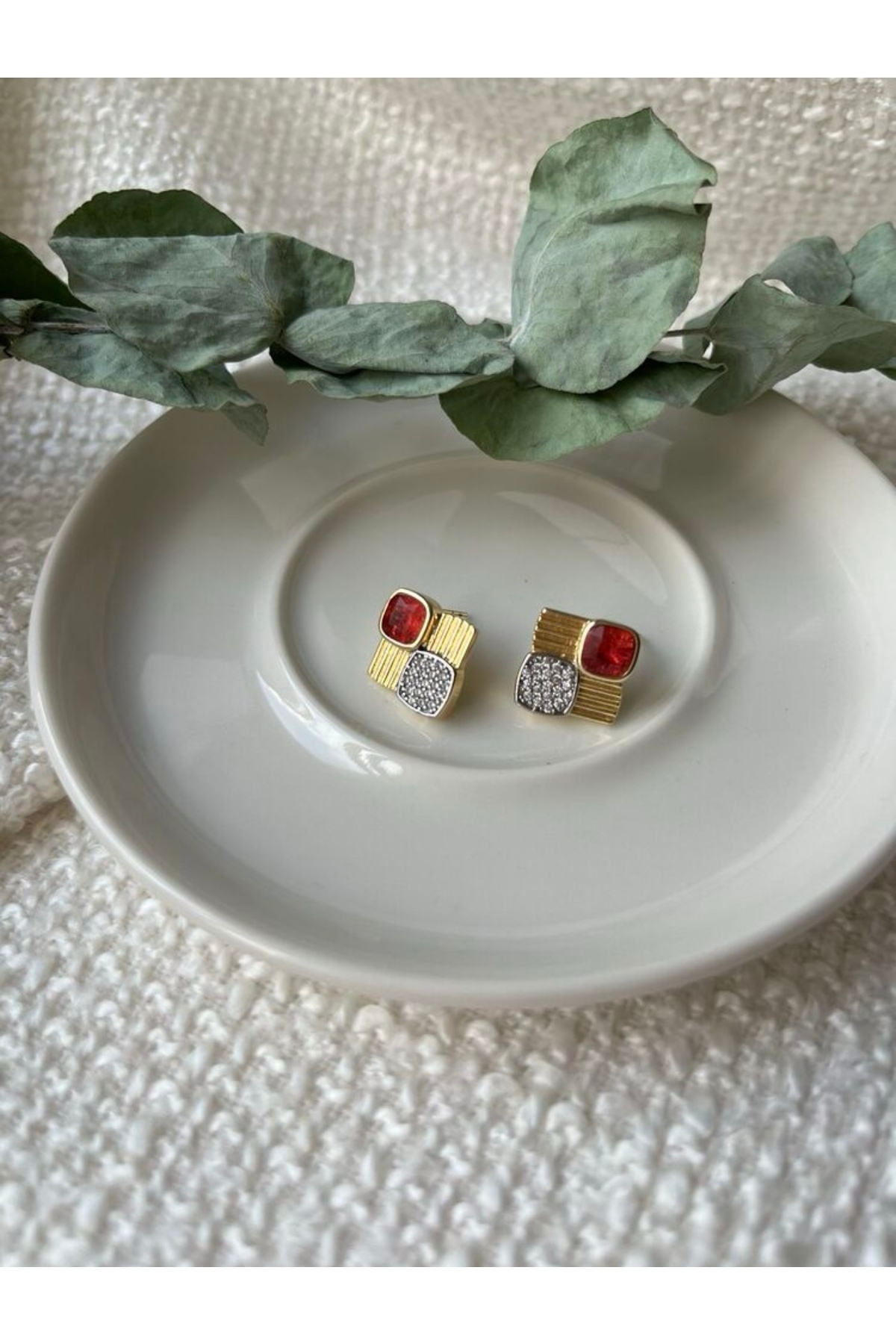 • Gold renk kaplama • Kare form modern tasarım • Kırmızı taş üst detay • Alt bölüm zirkon taşlı yüzey • Parlak ve şık görünüm • Hafif yapı, kulakta ağırlık yapmaz • Günlük kullanım ve özel gün…