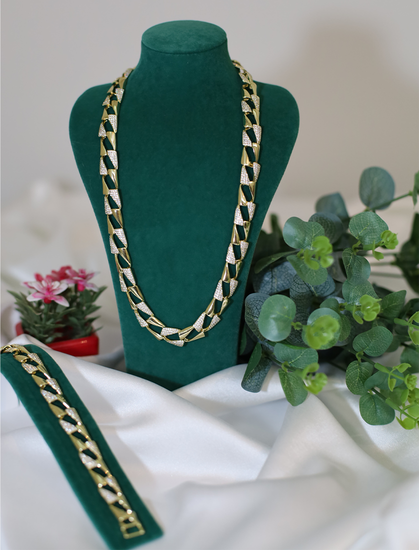 Gurmet Zincir Gold Kaplama Zirkon Çelik Set (Bileklik & Kolye) 14K