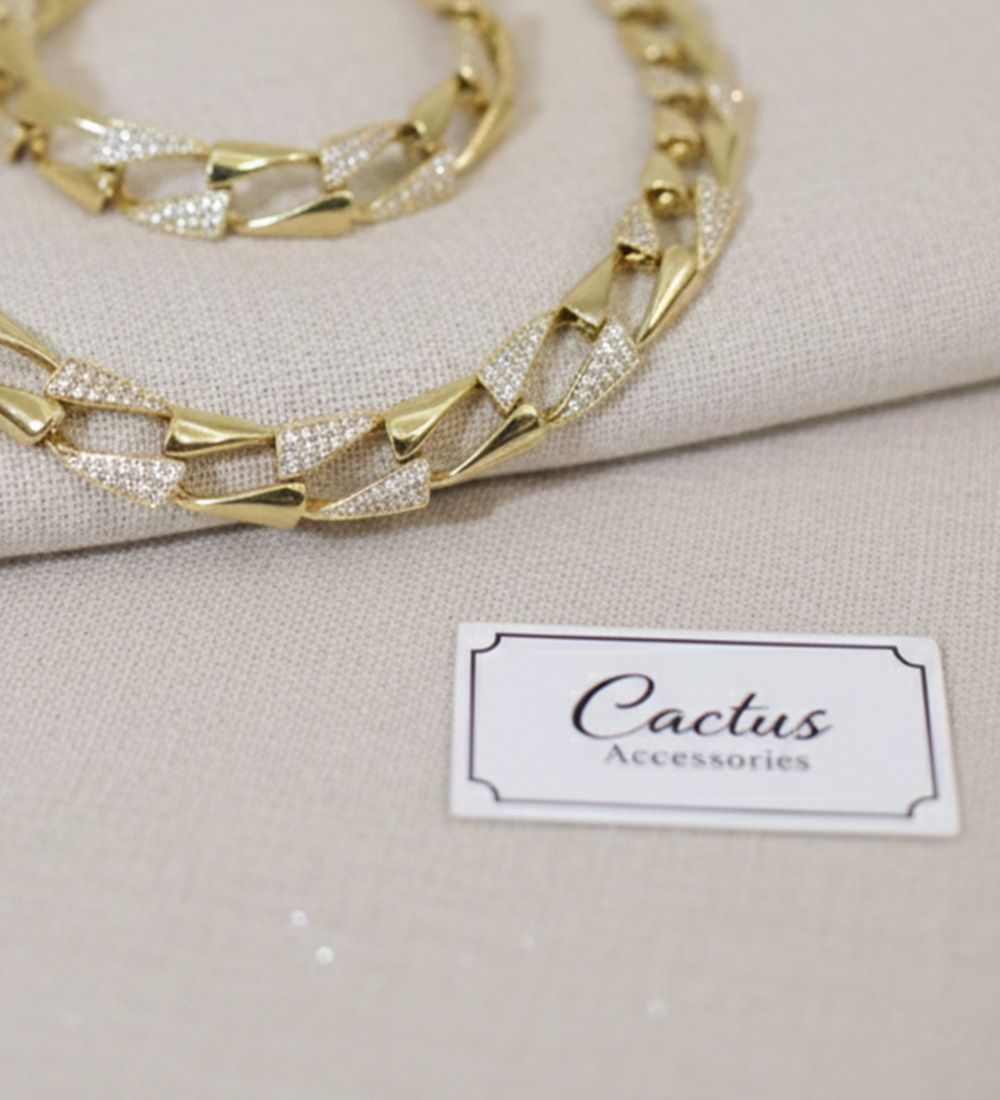 • Taş Detayı: Her bir zincir halkasının kenarları, parlak zirkon taşlar ile özenle süslenmiştir.