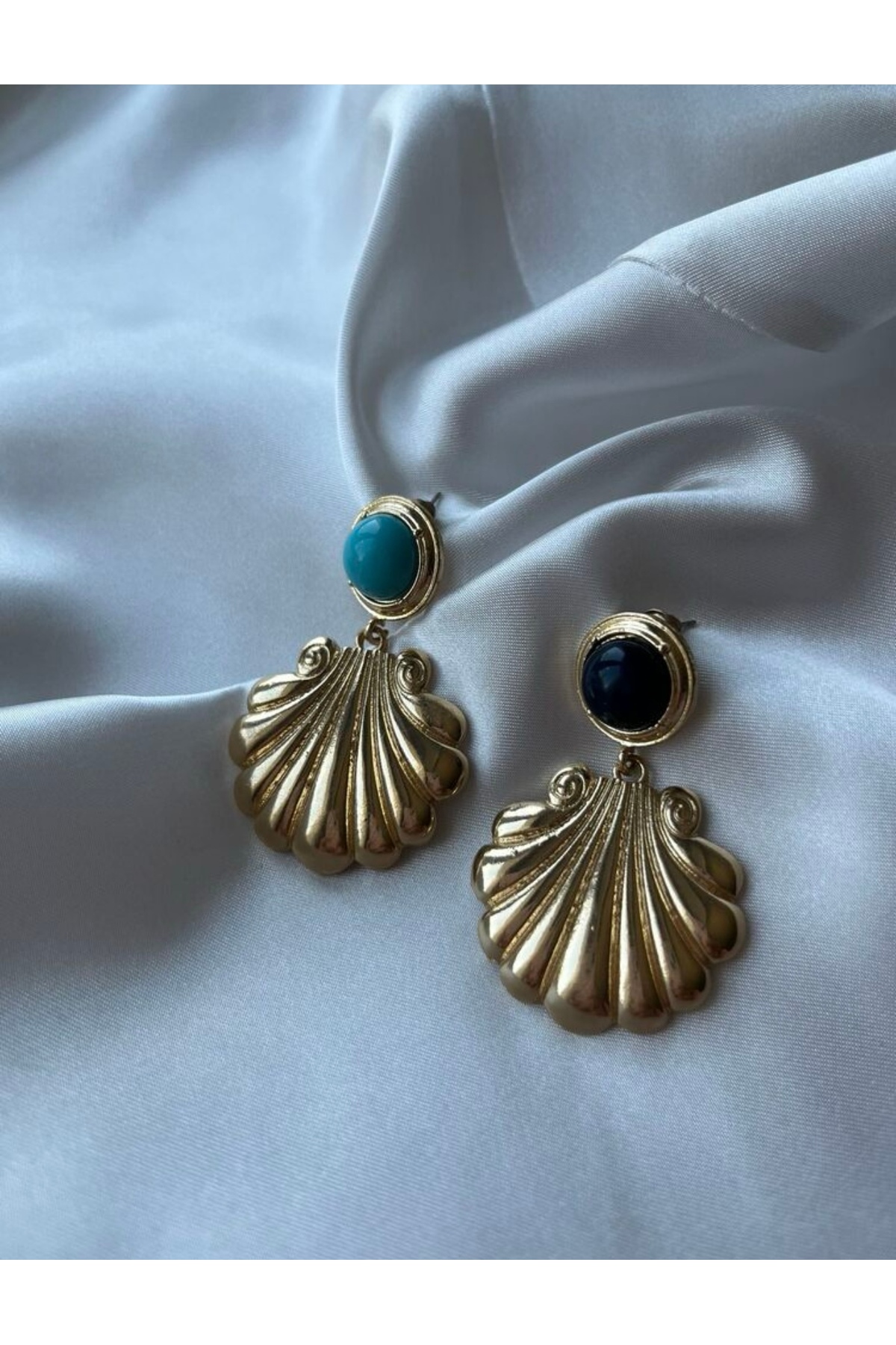 • Materyal: Kaliteli metal alaşım • Kaplama: Parlak gold kaplama • Model: Deniz kabuğu formunda sallantılı küpe • Taş Detayı: Turkuaz & lacivert ton yuvarlak taş • Kullanım: Günlük – özel gün – fotoğraf çekimi • Ağırlık: Hafif, gün boyu rahat kullanım • Alerji Durumu: Nikel içermez, alerji dostu • Tarz: Vintage – Coastal – Elegant • Kapanış: İtme kilit • Sezon: 4 mevsim • Hediye Seçeneği: Özel paketleme ile gönderim